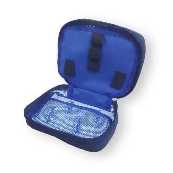 - Compartimientos adicionales: Además de espacio para tu insulina, cuenta con compartimientos para guardar tu glucómetro, jeringas y otros suministros.